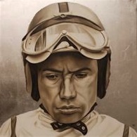 Racer, 2011, oil and metal leaf on canvas, 36” x 36”