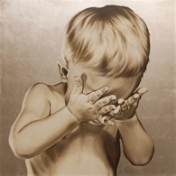 School Boy Taunt, 2011, oil and metal leaf on canvas, 36” x 36”