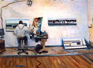 Brett in His Studio, 2011, oil on canvas, 30 x 40”