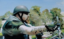 Bikers 1, 2 & 3 (triptych), 2009, oil on canvas, 2 - 22” x 40”, 22” x 36”